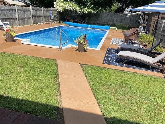 Well maintained three bedroom cape on a quiet street. Beautiful well maintained woodwork and hard wood floors. Many upgrades, new bathroom, some new windows, boiler 2006, HW heater 2014, circuit breakers 2016, country kitchen with new counter tops, built in pool with new liner and pool house, fenced in back yard with patio, large front porch. Must see property.