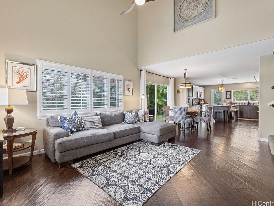 E Komo Mai! Welcome home to this beautifully maintained, golf-course frontage, pet-friendly, 3 BR, 2.5 BA, single family home located in the desirable & gated community of Hu'elani within Ewa by Gentry master community. This home features 36 PV panels, central AC, 2-car garage w/ space for 2 more vehicles to park on the driveway, lawn sprinkler, solar water heater, washer/dryer, dishwasher, ceiling fans, refrigerator, range/oven & more. The Turnberry floor plan is extra special as the primary suite is located downstairs which features a spacious walk-in closet, double vanity, and direct access to a spacious and tastefully landscaped backyard. Also, located downstairs is a half bathroom & laundry room. The living room opens up to a covered patio for entertainment with even more lush landscaping for privacy. Hu'elani amenities include secured entry, pool, spa, gym, recreational center that can be reserved, abundant guest parking & much more. Proximity to medical facilities, schools, grocery stores, eateries, golf courses, Ka Makana Ali’i Shopping Center, Laulani Village Shopping Center, The LineUp at Wai Kai, and a short distance to the beach. Schedule your showing today!