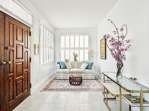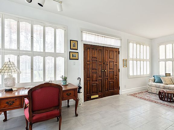 A center home entry welcomes you to the bright and airy first floor where you are immediately greeted by a gracious foyer. The warm and inviting front sitting area provides abundant natural light from oversized south-facing windows and is perfect for morning coffee or quiet reading. The adjoining living room further displays the home’s elegant appeal with high ceilings, gorgeous hardwood maple floors and crown-moldings. With two sitting areas, discreet bar, and a cozy gas fireplace, the room is equally fitted for impressing guests or casual lounging on winter evenings. Plan your next dinner party in the spacious formal dining room. A sophisticated setting with tall ceilings, hardwood floors, and decorative moldings, the room is the perfect backdrop for formal gatherings or intimate family meals, comfortably seating large parties. In what is sure to be one of your favorite rooms, the eat-in kitchen contains rows of cabinetry, granite countertops, full-size appliances and will accommodate large families for casual meals. Recessed lighting and oversized windows add to the charm while a powder room provides convenience. The kitchen opens to an ultra-private outdoor oasis, providing seamless indoor-outdoor living and perfect for hosting summer gatherings. Step outside to the large patio to enjoy grilling, outdoor dining, or quiet relaxation. A gated fence and tall plantings provides total privacy and seclusion.