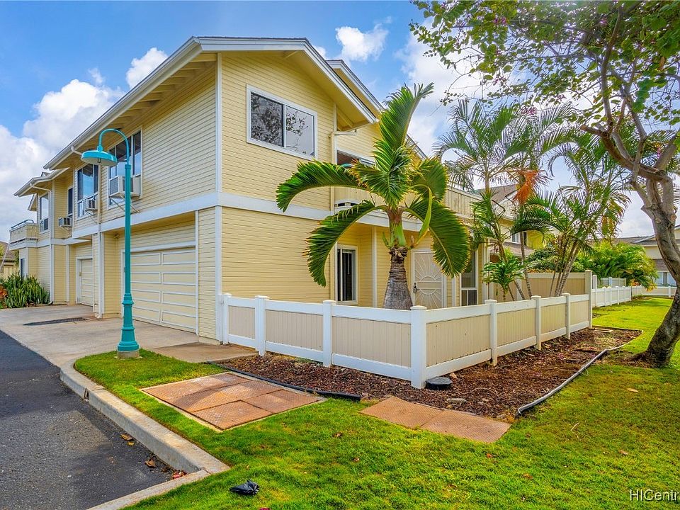 Rarely available and highly sought after "Model 2" in the gated and pet friendly, "Arbors" Townhouse complex. One of the best locations in the complex tucked away, but near the entrance. Guest stalls conveniently located out front. Come home to your private fenced in yard on this corner end unit. There is direct access from the attached and oversized 2 car garage with added room for storage. Front loaded washer and dryer included. Upstairs you will be greeted to the spacious and well thought out 2 bedroom, 2 bath floorplan featuring an eat in kitchen with soft close cabinets, stainless steel appliances, and granite countertops. The living room features an open lanai for indoor-outdoor living. The primary bedroom suite has dual vanities and double closets with a closet system. Complex has a resort feel with its own pool, jacuzzi tub, BBQ areas, and much more! Conveniently located near shopping, restaurants, beaches and the 2nd city of Kapolei. One or more photos have been enhanced.