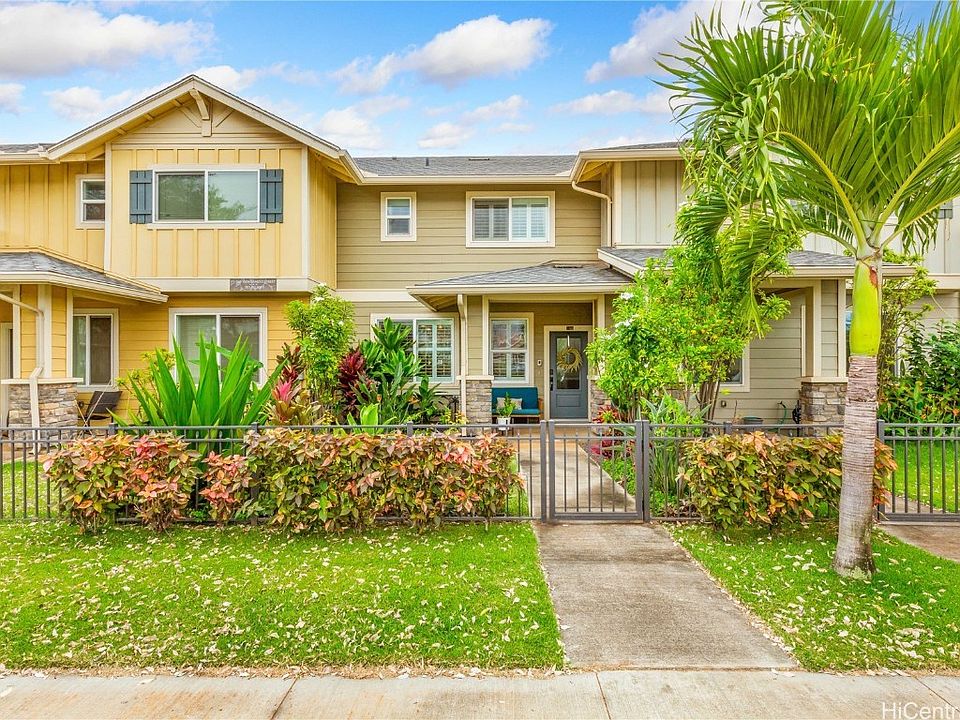 Beautiful 2 bedroom 2.5 bath townhouse with wonderful open floor plan that gives it a single family house feel. This 1212 square foot unit has a landscaped fenced courtyard in front and in the back of the unit for added privacy. Home has new vinyl plank flooring downstairs, on the stairway and the upstairs landing, new plantation shutters and downstairs half bath vanity, new light fixtures throughout and very well cared for. Each bedroom upstairs has its own bathroom and there is extra room at the top of the stairs for a work station. Seller is offering buyer $10,000 to be applied to buyer's closing costs or rate buy down. Home has access to the Hoopili rec center and park areas throughout the subdivision. Open house January 19 th 2-5 pm. "Other fee" is a submetering fee for water.