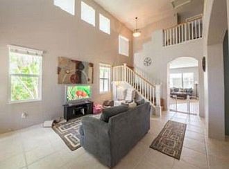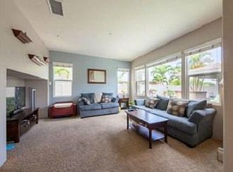 Beautiful open concept 4 bedroom/ 3 baths single family home. Stainless steel appliances in the kitchen. Ceramic tile throughout most of the downstairs living areas. One bedroom and full bath on the first floor. A built in nook right off the kitchen, perfect for using as a home office area. Laundry room with newer high capacity washing machine. Equipped with an ADT security system. Secured carport for third car parking in addition to street parking located in front of the home. Enjoy bbq-ing with friends on this spacious, private outdoor patio with a hot tub.