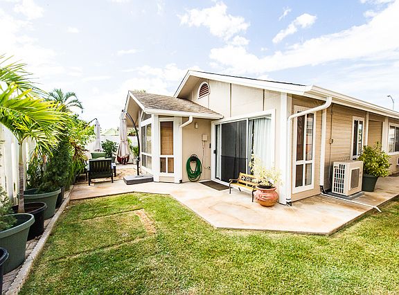 Single level home. Freshly painted exterior and NO MAINTENANCE FEES! Upgraded with quartz countertops in kitchen, real hardwood floors, new garage door, lush landscaping, stainless steel appliances, dark wood kitchen cabinets, split AC, fully fenced yard, sprinkler system. Garage, driveway and street parking. One half block to Foodland, Longs, Starbucks and more!