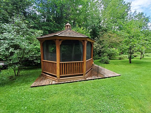 This exceptional modular home is very unique inside and outside. Meticulously cared for, you are sure to be impressed. Oak flooring in several rooms and new laminate flooring in kitchen. As you go through the house from basement to second floor, you will see that this is not your average modular home and many upgrades have been added by the owner. Large basement den is presently used as a bedroom. Into flowers, fruit trees and shrubs? The back yard and front of the house has the most beautiful gardens and fruit trees you may find in the area. The property is completely fenced in and at the rear of the yard, is a gazebo, fireplace and a "man cave" that any man could only dream about. It is insulated and warm and cozy in the winter so the boys can go out back and shoot pool and drink beer all night long. Property is owned by a plumbing and heating contractor so everything is perfect