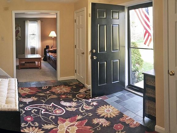 Spacious Garrison has been lovingly cared for and updated. Large Foyer with two closets leads to Formal Living Room with adjacent Office and Dining Room with hardwood flooring. Granite Kitchen has Rounded Peninsula that seats three and Stainless Steel appliances. Vaulted Family Room offers a wall AC unit and wood stove insert in the Brick Fireplace. Laundry hookups are on the first floor and separate from the Half Bath. Upstairs we find 4 Large Bedrooms and two full baths. Master Bedroom has large walk-in closet and Master Bath has recently been renovated with Glass enclosed air-jetted Tub/Shower, Granite double vanity and cork floors. Several new carpets were just installed. Outdoors made for enjoying with vaulted Sunroom, Deck, Patio, Fire pit, Play house and Swing Set. Shed stands ready for storage and there are beautiful gardens and stone walls. Well pump and well pressure tank are fairly new. 9 zone Irrigation system installed. Alarm system wired. Workshop in the basement.