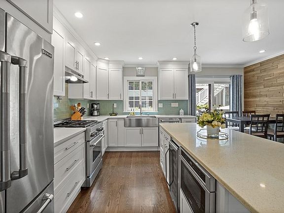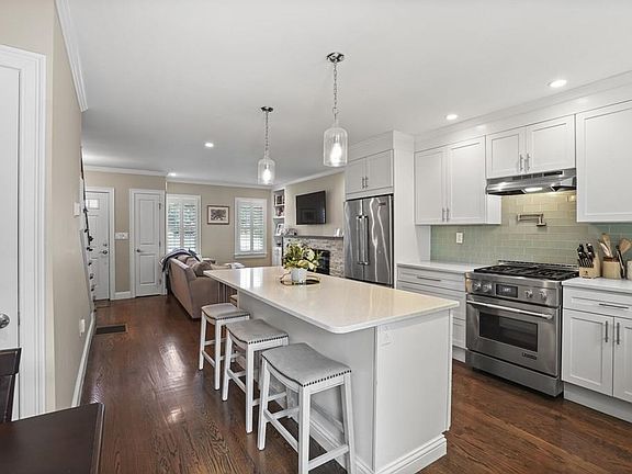 Beautiful, newly renovated three bedroom, two & a half bathroom row-house single family home in a coveted West Side location. The welcoming front entry way leads you into your open concept floor plan main living space which boasts a lovely living room with plantation shutters, built-in bookshelves & a handsome gas fireplace with stone surround. As well as a custom chef's kitchen with sparkling quartz countertops, Jenn Air appliances, a spectacular center island with breakfast bar, an alcove for dining & sliding glass doors that lead out into a lovely/spacious meticulously landscaped rear deck & patio. The 2nd floor features two generously sized bedrooms, full bath & half bath with laundry. The full floor master suite has custom closets & a luxurious master bathroom with double sinks & a glass enclosed shower. Notable features include oak flooring, custom closets, built-ins, marble/tile bathrooms, central AC, Electrolux laundry, 451 sq t of dry basement storage. A must see!