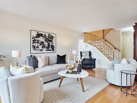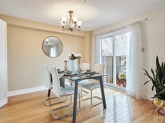 Live across from Mooney's Bay in this lovely END unit, condo-townhome in the neighbourhood of River Gardens. Meticulously maintained home will meet all your wants and needs in this this central location. The main level features hardwood floors and a spacious living room and dining room for entertaining. Classic white kitchen with plenty of cabinet space and bright eating area to enjoy your morning coffee/tea. Updated powder room on main level. Hardwood staircase to second level. Primary bedroom is inviting and neutral in colour. Secondary bedrooms are a good size. Main bathroom on second level is a modern white design (updated 2017). Family room in basement to enjoy a separate TV room. Storage area in basement with shelving. Relax in your backyard on the patio with views of Mooney's Bay. 3D tour link on listing. Roof (2021). PREEMPTIVE OFFER RECEIVED-New offer presentation time of Sunday, March 27th at 9:00 A.M.