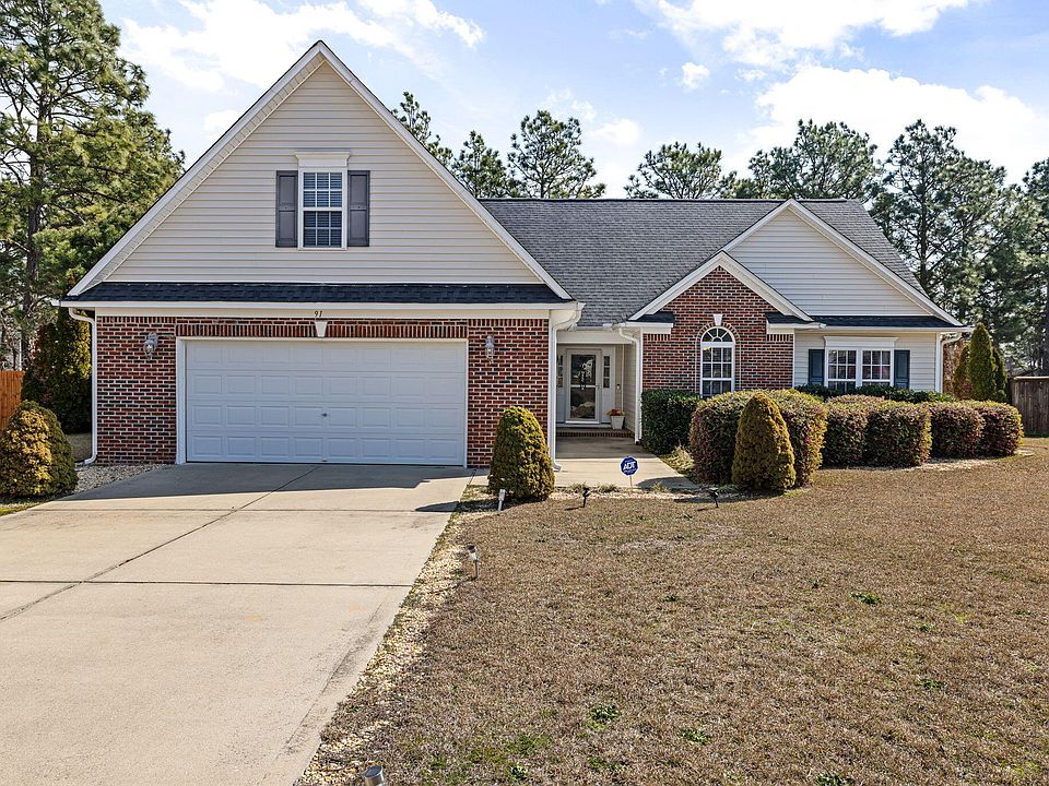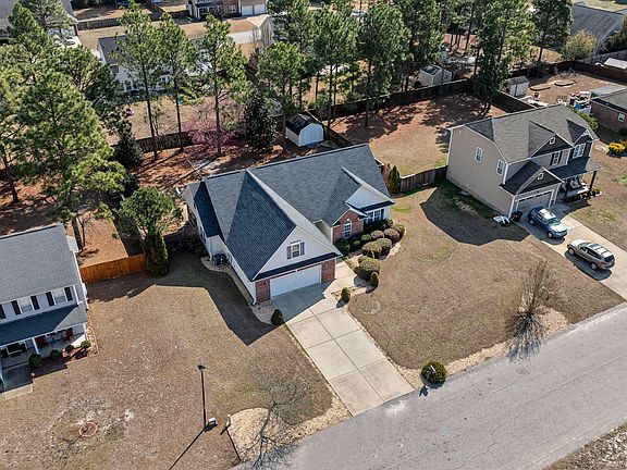 Charming 1.5 story single-family residence. 15 miles from Fort Liberty. This accessible home boasts main floor laundry, featuring a double vanity in the bath. Constructed with quality in mind, the exterior showcases all brick veneer, a fenced yard, and inviting patio, porch, and screen porch spaces. The kitchen is a chef's dream with updated appliances, including a dishwasher, disposal, and a range. Central air conditioning for ultimate comfort. The fireplace, adorned with gas logs, graces the cozy living space. Diverse flooring options include carpet, hardwood, and tile. Electric fuel heat keeps you warm in winter, while interior highlights feature granite countertops, tray ceilings, and a security system. The master bedroom on the first floor adds convenience. 2nd Floor boast a Bonus Room and additional Bedroom with Full Bath. The attached garage simplifies parking. Don't miss the chance to own this stylish home.