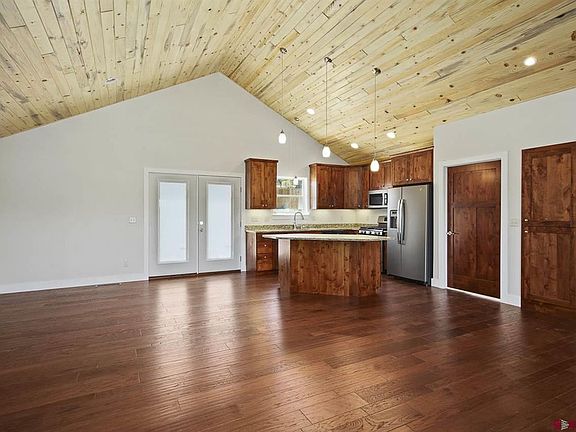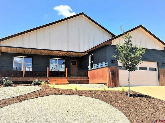 Brand new one level ranch-style home! Wonderful covered porch with pine T&G ceiling, propanel roof, batt and board siding with decorative distressed metal accents and a custom stained front driveway. Upon entering the home, you are greeted by a spacious great room with blue pine vaulted T&G ceilings, hardwood floors, recessed lighting, French Doors to the patio, and abundant windows for loads of natural light. Custom knotty alder doors throughout the house. The kitchen features a breakfast bar island, matching Slate finish stainless steel appliances, custom cabinets with under cabinet lighting, and granite counter tops. The spacious master bedroom has an oversized walk in closet, an ensuite bathroom with double vanity, a separate shower and a tub with the custom tile surround. So much attention to detail! On the other side of the house are the two additional large bedrooms with a full bathroom between the two rooms. The laundry room leads to the good size two car attached garage. Only 20 minutes to Durango, this unique house has paved access and low HOA fees. Ductwork done for AC installation. One year Builders Express Limited Warranty included.