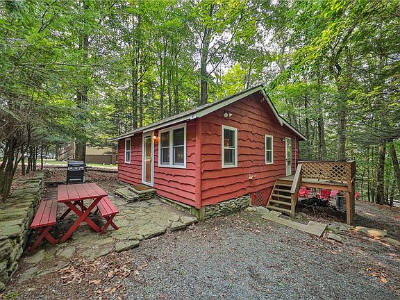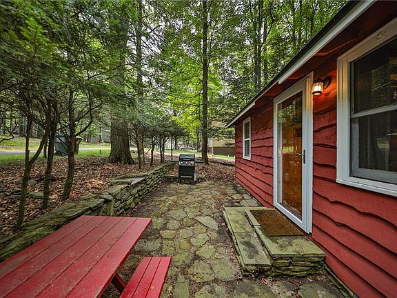 *Showings Start Friday, July 21st* Incredibly Cozy Cabin located in the Indian Rocks Community and within walking distance to Lake Wallenpaupack! This 2 bedroom and 1 bathroom RANCH style home was REMODELED in 2020 and features NEWER LVP FLOORING, ROOF, and SEPTIC. There is plenty of outdoor living space to appreciate this beautiful area. A front PATIO is currently set up to BBQ, while the side DECK is perfect for relaxing and provides a view to the BACKYARD and FIRE PIT! Come enjoy the natural COOL air, gorgeous SUNSET views on the COMMUNITY BEACH and comfort of a warm outdoor campfire in this beautiful private community. Lake rights, a Clubhouse, Outdoor Pool, Tennis Court, and Pond are among some of the amenities this Community has to offer. Don't wait! Make your Appointment today! Owner is a Licensed Real Estate Agent.