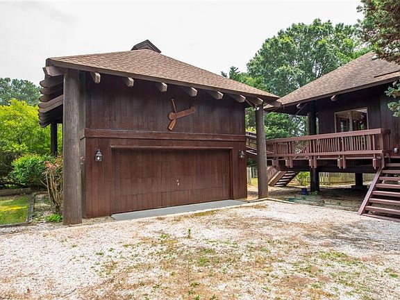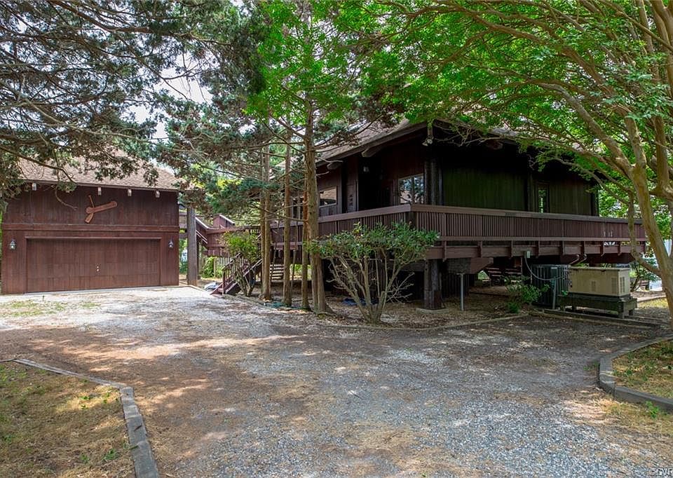 Impressive "Up The Creek" Home. Waterfront Property with Large Dock and Boat Lift(2008). Bright and open home with Vaulted Ceilings. Almost Acre Lot. Very private setting. Minutes to Chesapeake Bay. Beautiful Redwood Home with Redwood paneling. Exterior Stained in July 2019. Wrap Around Porch and Deck. 2-Car Detached Garage with Guest House above. The Guest house is set up to make a nice office, 3rd bedroom or can even rent the room. 1st floor Bedroom with full bath and 2nd floor Master Bedroom. Freshly refinished hardwood floors. Kitchen features New Corain Counter tops and New Stove/Oven and Dishwasher. New Heat Pump in main house 4 ton 15 seer unit in 2015. New Heat pump in Guest house 2-ton in 2015. Automatic 13k Whole house Generator. Reverse osmosis water treatment system that provides very good drinking water. Unique home with Dock makes a boaters dream come true! Check it out!
