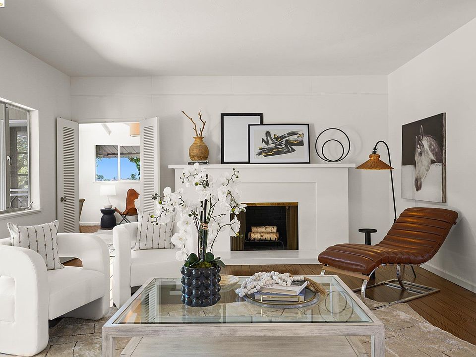 This elegant Mid-Century home in Upper Piedmont offers a blend of classic design and modern amenities across the two levels. The main level features a formal living room and a separate dining room with beautiful hardwood floors. The cozy den with wood-burning fireplace gets lots of natural light, and is adjacent to both the grand living room and the eat-in kitchen. The main level includes two spacious bedrooms and two full bathrooms, one of which is the primary suite. The lower level is perfect for both relaxation and productivity, boasting a third bedroom, a full bathroom, plus a versatile rumpus room, and the adjacent storage room or home office. Additional features include inviting decks, ample storage throughout, a laundry room, and a convenient two-car garage, making this home both functional and stylish.