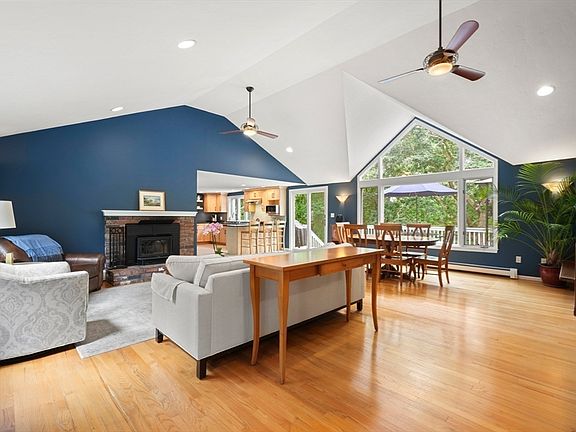 Nestled in the midst of Marshfield Hills in a nature lover's paradise, this pristine oversized ranch invites you with its unique combination of traditional charm and modern design.Thoughtfully laid-out space features architectural elegance highlighted by expansive walls of windows that capture the beautify of the surrounding nature. The open concept living area boasts vaulted ceilings and gleaming hardwood floors. A new kitchen showcases light cabinetry, open shelving and granite counters. The main level also includes a living room, dining area, 3 bedrooms, 2 baths and a large bonus/game room. A second level addition offers a large family room, office, kitchenette and bath with plenty of options for separate space! After work escape the hustle and bustle and enjoy the great outdoors in a natural setting! Explore the walking trails, stone walls, or head over to the General Store, the Genny Ice Cream shop or Clift Rodgers Library! Close to the train, beaches and other area amenities.