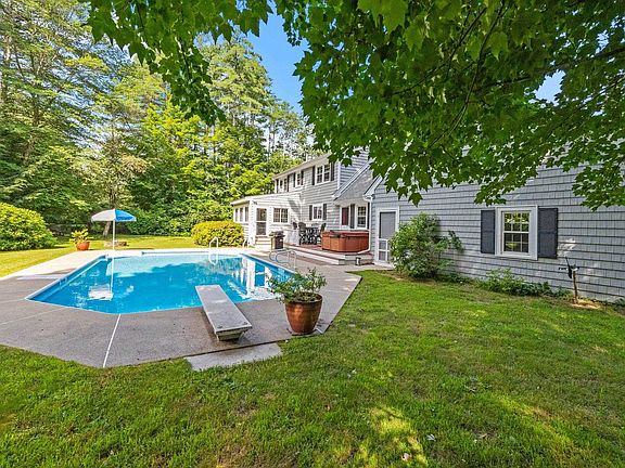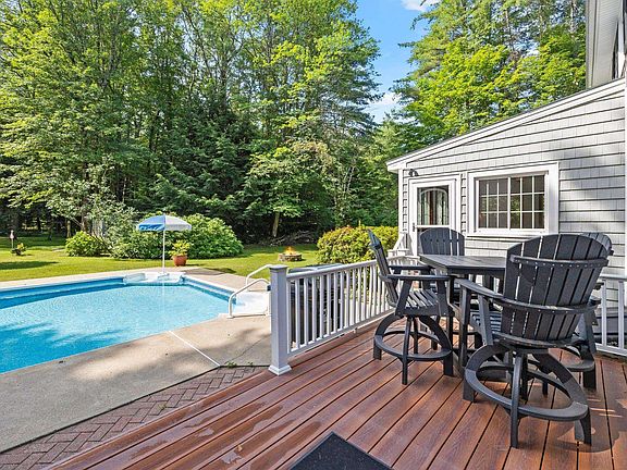 You're going to fall in love with this adorable Cape with vinyl shake exterior, and sumptuous surroundings that include a park-like, completely fenced in back yard with heated in-ground pool, hot tub, and composite deck. 47 acres of town land run behind the property too! Inside, you'll find modern comfort meets rustic charm in the large mudroom entry with Dutch door, an eat-in kitchen with large window that beautifully frames your view to the back yard, a 3 season room off the back you'll enjoy year round, and a spacious living room with gas stove hook up. Need more room? There's a pellet stove and additional finished space in the lower level. The windows have all been replaced, the heating system is just 2 years old, there's a versatile walk up space over the garage, and ample closet space throughout. Located in a quaint, destination-only neighborhood in the top rated Hopkinton School District within easy walking distance to Contoocook village, dining and shopping. Showings start Thursday at the Open House from 4-6pm, also open Friday 4-6pm and Saturday from 10-12. The OPEN HOUSE that was planned for SUNDAY is CANCELED.