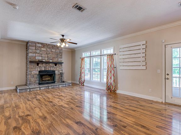 CHARMING COUNTRY HOME on 5 acres. Beautiful stone floor-to-ceiling fireplace, with lots of windows overlooking the serene views. This home features the highly desired open concept with a kitchen island open to the living room, 9 ft ceilings throughout. Oversized master bathroom, large jacuzzi tub and a walk-in shower, and closets galore. Call today to schedule your showing. Nice shed and kids play set stay. Washer, dryer, and refrigerator are negotiable.
