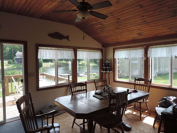 LAKE ST CATHERINE. A very well taken care of cottage with a Great room combining the kitchen, dining and living room flanked with a brick wood burning fireplace. The new addition sun room with ceiling fans and all new windows overlooks the lake and a place that you could spend all day. The owner has put in all new plywood flooring. The kitchen has new counter tops. A new deck off the sun room overlooks the lake. A very private setting.Boat dock included. Storage shed. Come take a look can't beat the asking price!
