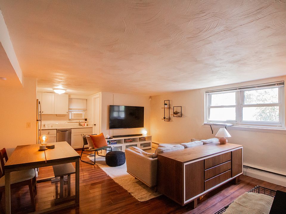 Garden level spacious studio found on quiet street 0.1 mile to 60 bus line stop and 0.4 mile to the Brookline Hill D line. Laundry in building, pet friendly, heat and hot water inc. Parking for rent. (WSR Broker - Adele Lurie)
