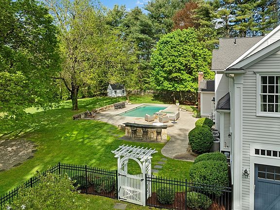 Nestled on a beautiful 1.37 acre lot this meticulously maintained 5 bedroom, 4.5 bath Colonial is sure to impress. The 1st floor boasts hardwood floors throughout, a formal dining area and living room with gas fireplace. At the heart of the home, the renovated kitchen features Thermador appliances, a walk-in pantry, large center island & eating area with easy access to the backyard. The kitchen opens to the family room, complete with cathedral ceilings & fireplace. The 2nd floor features a beautiful primary suite offering a stunning renovated bathroom, walk-in closet & gas fireplace. There are 3 additional spacious bedrooms, 2 updated bathrooms and laundry room. The third floor offers a bedroom, private bath, closet and extra storage space. In the finished lower level, you will find a large recreation room & exercise area. Picturesque flat backyard, complete with a heated pool, hot tub, fire pit, and outdoor kitchen. An exquisite home perfect for entertaining both indoors and outdoors.