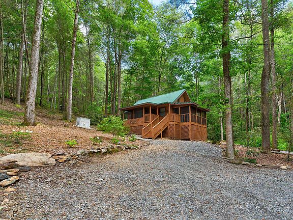 Adorable 2/1 cabin with creek frontage is exactly what the doctor ordered. Sit outside on either of the 2 screened in porches and enjoy 2 extremely loud creeks that can be heard from the entire property. Easy to maintain yard is covered with mulch and a graveled walk to the fire pit splits the front yard down the center. Fireplace with gas logs, gasoline generator and a small private deck on the 2nd level. Plenty of room for another fire pit and chairs creek front. Walk to USFS land or drive up the road to Conasauga Lake or Pinhoti Bike Trails. Furnished just bring your clothes. You will not be disappointed with this very well maintained get a way.