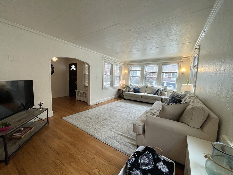 Great layout with common area on one side and private living on the other. Front and rear porches with off-street parking! Close to B line train, Whole Foods, Brighton Center, and Commonwealth Ave.