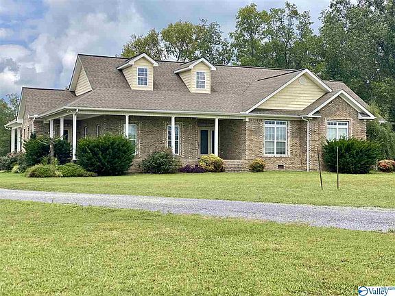 WILL GO FAST!! Fantastic Value with Many Extras! Country living with this large spacious 4 bedroom/3 bath full brick home with brick door and window molding situated on +/- 5.58 acres. Large kitchen with built-in table and large island with bar seating. Vaulted ceiling in the family room with stacked rock fireplace Two-sided fireplace that opens into dining room. Large master bedroom with door leading onto back porch with En suite with walk-in tile shower. Two car carport with storm shelter located under carport. Large detached building with Lots of storage areas.