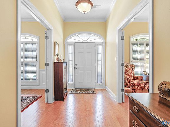 Nestled in the coveted Priceville School System, this impeccably maintained single-level home is a one-owner gem. Spanning 2,681 sqft, residence offers 4 spacious bedrooms, 3 full baths, a front office/den, a formal dining room, and an oversized den with a cozy fireplace. The eat-in kitchen is a chef’s delight, featuring elegant granite countertops and custom cabinetry. The master bedroom boasts three closets and a glamorous bathroom, providing a luxurious retreat. Set on a lush 1/2 acre lot with verdant green grass, the property includes a sprawling backyard and a detached workshop/garage. Updates include a new roof, water heater, and carpet, ensuring modern comfort in a beautiful setting.
