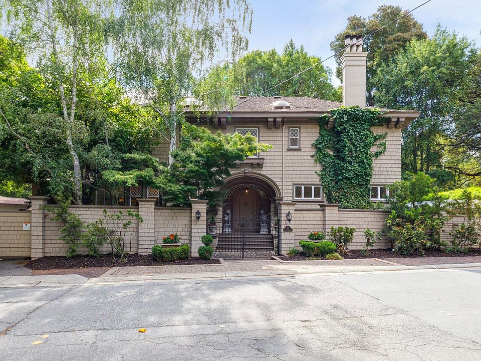 Located just blocks from downtown San Mateo and with access to acclaimed South Hillsborough Elementary School, this circa 1906 Craftsman presents time-honored architecture combined with numerous updates for today's lifestyle. Sheltered from the street by two gated driveways, and bordered by a gently flowing creek, the home presents exquisite period details like coffered ceilings, elaborately carved fireplaces, and to-the-floor windows that take full advantage of the beautiful setting. Luxurious amenities include a gourmet kitchen and family room combination, remodeled bathrooms, a large office that doubles as a media room, plus a temperature-controlled wine cellar. Upstairs, there are 4 spacious bedrooms and with a total of almost 4,000 sqft, there is ample room for today's work-from-home needs. Outside, the verdant grounds of more than 1/3 acre comprise numerous outdoor venues with vast decks, a spa, and level land for creekside recreation and gardening.