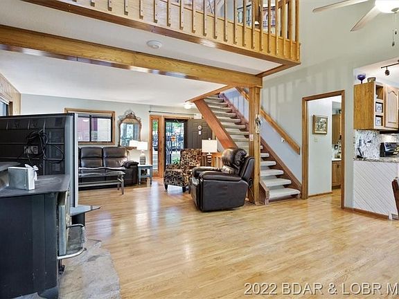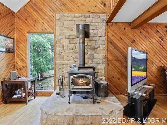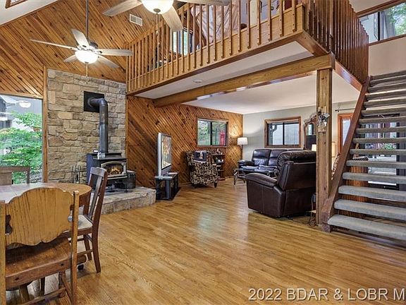Zero steps to the water! The house features beautiful tongue and groove wood siding, vaulted ceilings, granite counters, lots of outdoor space! With over .5 acre and 160 ft of lake-frontage, not only is there extra privacy, space to explore, and nature surrounding! The concrete driveway continues all the way to the boat dock, making the water truly accessible all! Multiple covered and uncovered decks/patios are sure to provide plenty of room for the whole gang. The main level has the kitchen, dining + pantry, living room, bed, and a bathroom. Upstairs, there is huge bedroom, full bathroom, and large loft that is very versatile! The lower level is currently used as the master ensuite + bathroom, huge walk in closet, office area, and utilities. Two wood stoves are installed as an optional secondary heat source. The A four car features an unfinished space above that has plumbing roughed in and could easily be finished out! Community pool, boat ramp, and more subdivision amenities! 2022-07-23