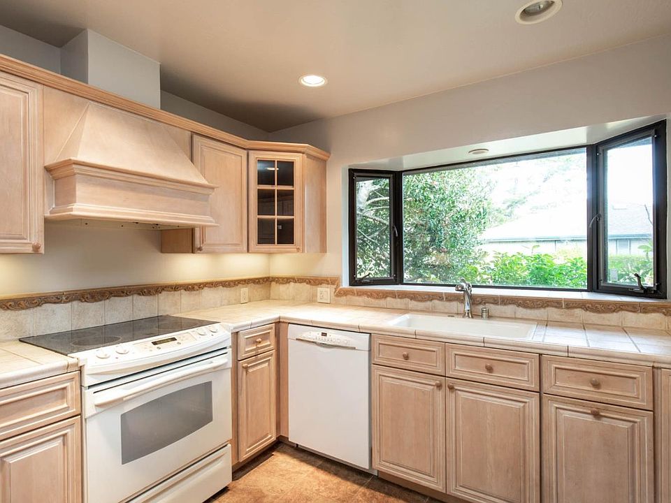 - Kitchen: Dishwasher, Countertop - Tile, Cooktop - Electric, Oven - Electric, Exhaust Fan, Hood Over Range, Refrigerator
