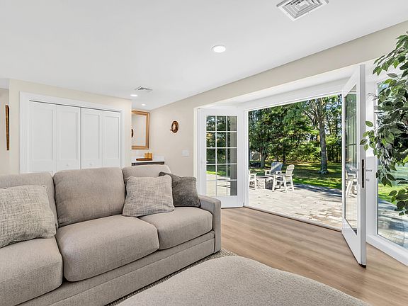 Charming and Elegant best describes this spectacular total renovation in West Harwich. This fabulous home offers a soothing feeling as soon as you step inside. There is a beautiful large living room complete with new large screen TV and built in bookcases. French doors lead to a massive new paver patio with fire pit. A tranquil feeling embraces you being surrounded by nearly 3 acres with conservation land and complete privacy to the rear. Ideal for relaxing or gathering with friends for a BBQ. Back inside a a new designer chef's kitchen awaits with all new Kitchen Aid SS appliances ,quartz counter tops and center island for family gatherings. Two complete ensuites with either walk in shower or soaking tub. Both bathrooms feature beautiful vanities and all new tile. A fabulous laundry room and half bath in the rear complete this renovation. The home has gas heat and central AC for year round enjoyment. This home has been staged by Habitat for Humanity with all brand new furniture and may be purchased turnkey or without the furniture.(Additional $19,000 with Furnishings) The home is immaculate ,stylish and move in ready.