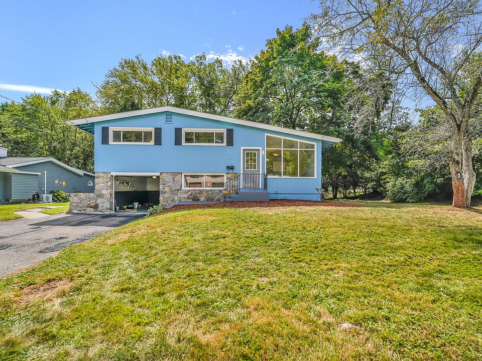 This charming single-family home on a corner lot offers 3 bedrooms and 1 full renovated bathroom with attached one car garage! As you enter the home your will find yourself in a bright living room/dining room with large windows overlooking the verdant front yard. This room flows seamlessly into a newly renovated, modern kitchen with center island and brand new stainless steel appliances and plenty of beautiful, white cabinetry and granite countertops! Gleaming hardwood flooring throughout! All bedroom are on the upper level. Full bath has attractive light brown flooring and a beautiful vanity with overhead lighting. Enjoy the private yard while sitting outdoors on the deck or from the enclosed three seasons porch! Downstairs houses the garage, a room with the washer/dryer and an area that can be used for storage or closed off as a bedroom. Located in a quiet neighborhood while still close to schools, shopping, and major highways for easy commuting. This home boasts a new roof and boiler! A wonderful opportunity for a home owner! Schedule your showing today!