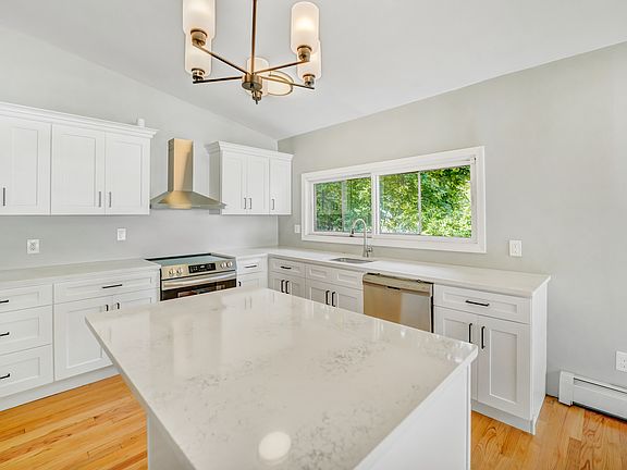 Center islandBeautiful white cabinetryNewly renovated modern kitchenCorner lotGleaming hardwood flooringRenovated bathroomGranite countertops