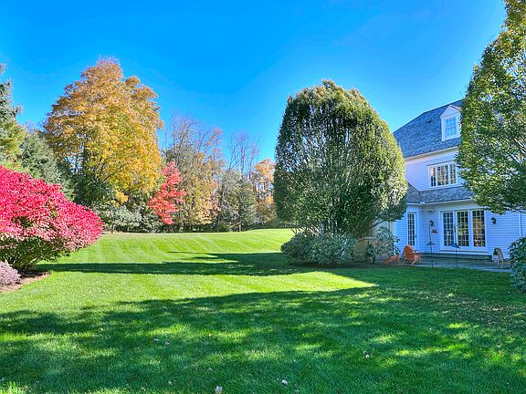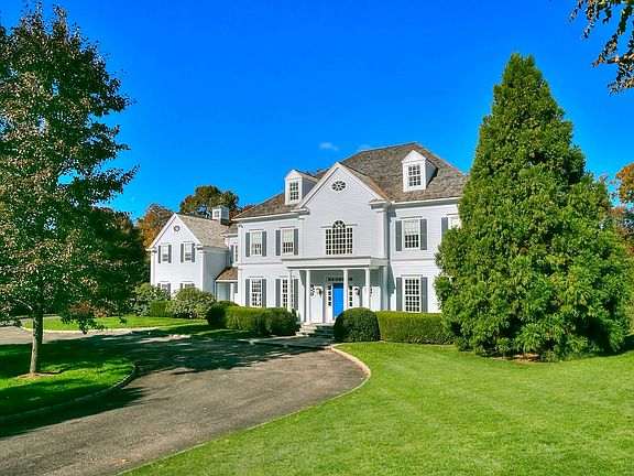 This classic 5 bedroom stately colonial on 2 flat acres is located just a mile from town on a premier cul de sac with magnificent trees and lawns. The large, bright stylish rooms ,beautiful floors, kitchen and baths, and comfortable flow from room to room conveys an open floor plan without compromising the need for defined spaces, putting this home in a class by itself. Exceptional light throughout and very private. Pool site.