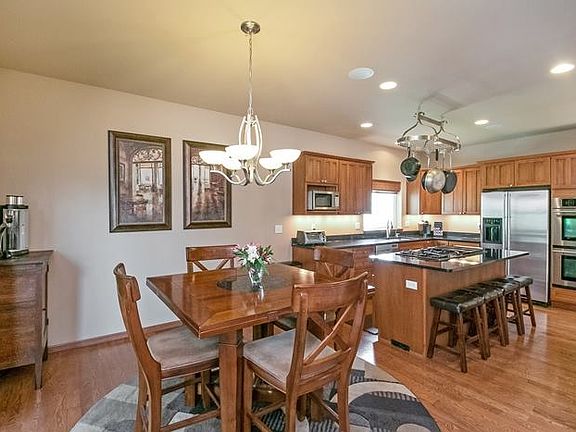 Situated in a popular east side location is this custom built one owner home and loaded with upgrades! Huge eat-in kitchen with Quartz countertops, breakfast bar, custom built quarter-sawn oak cabinetry with self closing drawers in the kitchen and throughout the rest of the home, under cabinet lighting; upgraded stainless steel Jenn-Air appliances including a dual wall ovens and cook top and Bosch dishwasher; beautiful great room with detailed arch doorways; gleaming hardwood floors.