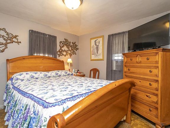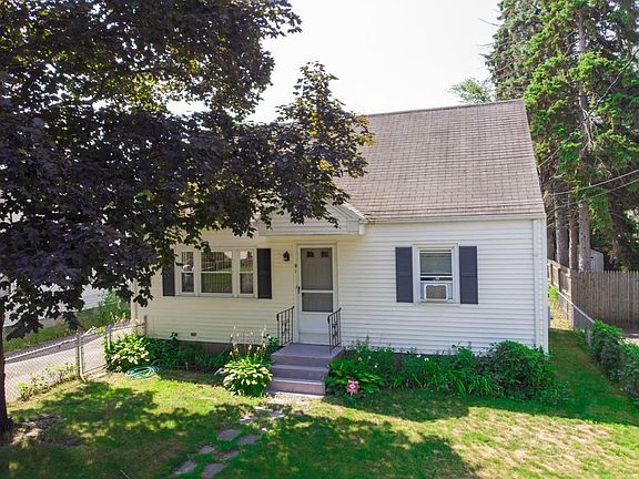 Well-maintained Cape, living room includes hardwood floors beneath the carpets. Beautiful picture window overlooking front yard. Kitchen includes all the appliances including a brand new stainless steel refrigerator, plenty of cabinets for storag, and eat in area. Two bedrooms on the first floor and hardwood floors, second floor is open space ready to be finished. Basement has several additional rooms with a bulkhead that leads to the back Yard. Newer heating system, updated electrical, vinyl siding, insulated windows, a covered patio off the back of the house, Shed with a nice fenced in yard.