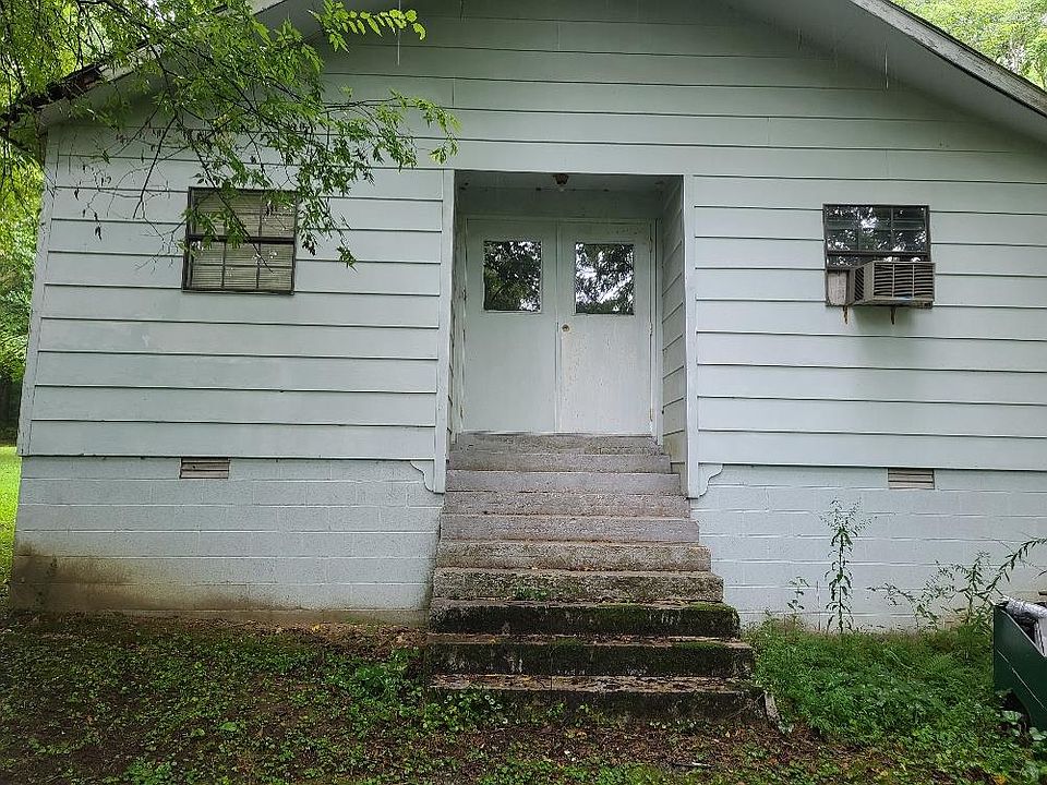 Property listed as land and includes a 60X30 church building with basement, electricity, well water, septic, w/older storage bldg. joins large land tract by separate owner, wonderful tree lined land tract as you enter the property area, great building to improve for hunters, fishermen, even a good place to improve for a residential property. Has wooden flooring, accessible basement inside and outside. All measurements are estimated and all utility information provided by seller. NO RESTRICTIONS Seller selling property as is.