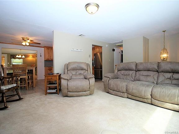 Tour this bright and open 4-bedroom raised ranch in a quiet Bristol neighborhood! This home offers plenty of room for a large family or anyone looking to accommodate short term or long term guests! Main floor features a spacious living room with bay window and a cozy gas fireplace and a beautifully updated kitchen with tile flooring, island and stainless steel appliances! A separate dining room with a great built-in hutch is perfect for hosting an evening dinner party and also offers plenty of sunlight during the day. Main floor also includes 3 bedrooms and 1.1 baths. Lower level is great for guests or in-laws, equipped with a family room, rec room and a 4th bedroom! Walk out to a peaceful and shaded patio area; have an outdoor cookout & pool party on this beautiful Trex deck! This lovely fenced in lot also offers an outdoor shower, sprinkler system and a great shed for storing lawn & garden tools. Utilize extra parking and storage space with a large 2-car garage. Stay cool on the hottest days with central air! Tour this home today!