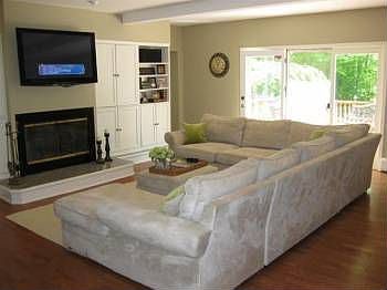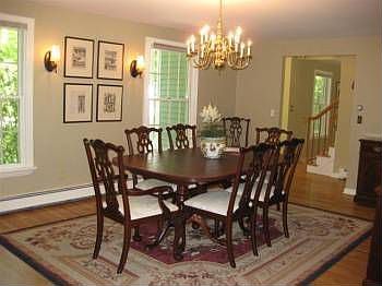 This updated colonial offers hardwood floors, a large living rm with built-ins, fireplace & sliders to deck. The spacious dining rm is enhanced by a fireplace. The bright eat-in-kitchen has sliders to 3 season porch with ceiling fan. The master suite has vaulted ceilings, french door to a balcony overlooking the park like yard. There are 4 additional bedrooms. The 2nd floor family room is accented by walls of windows & an abundance of storage. The finished lower level has storage, work shop & laundry room. The sprawling grounds are accented by a custom firepit & stone walls. Great Southern location. New roof & septic. A must see!!