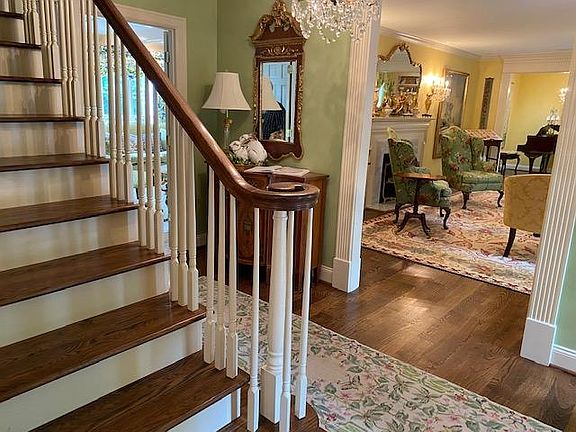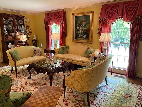 Located on 2.2 acres, this story & a half brick home has 4 bedrooms, 3.5 baths, living room 20 ft, music room, den with gas log fireplace, gourmet kitchen with island, Corian counter tops, 6-burner Viking stove, 5-ft wide refrigerator, dining room, tremedous brick terrace, 3-car garage with basement underneath with office/workroom/shop with roll-up door.