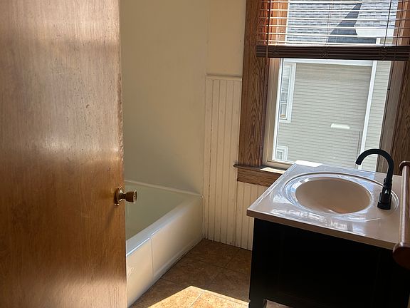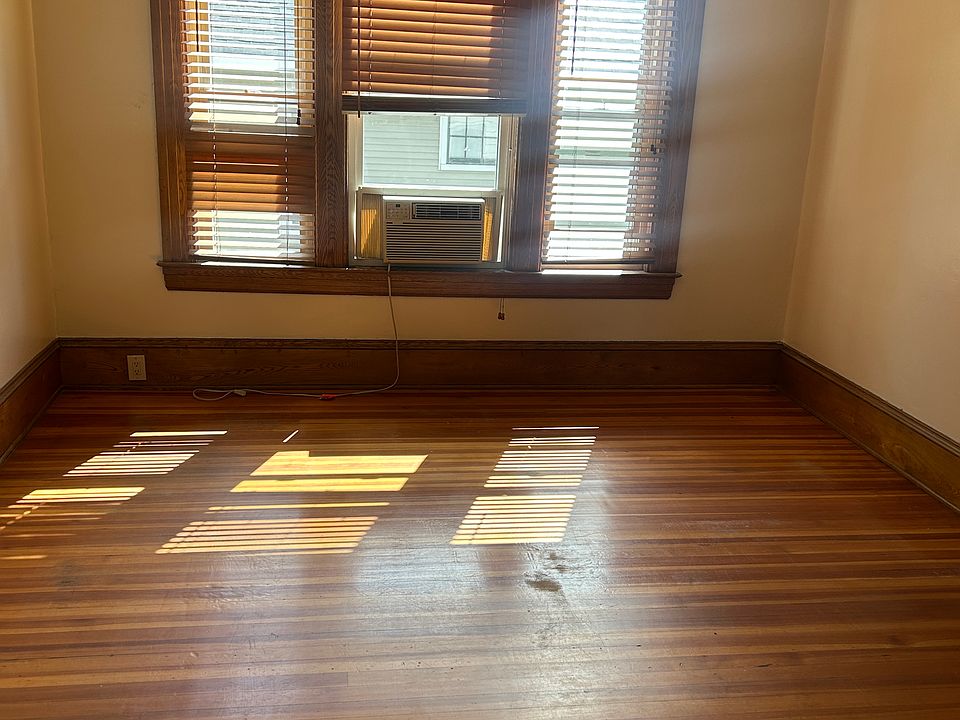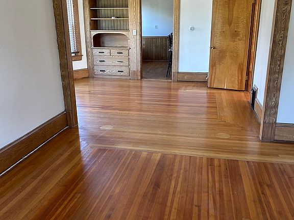 Centrally located move-in-ready second-floor 5-room apartment, two bedroom, one bath unit , appliances, range and refrigerator, hardwood & tile floors, most rooms have ceiling fans, washer and dryer in basement, spacious kitchen, dining room, off-street parking, or use of one side of two-car garage for a fee Owner pays for water, rubbish removal; tenant pays utilities