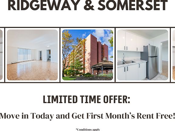 AboutWelcome to Ridgeway & Somerset in Kitchener Ontario. These 9-storey twin buildings offer clean, modern, and spacious bachelor, 1, and 2 bedroom apartments. The apartments are freshly painted and cleaned prior to moving in. The buildings offer onsite storage, underground parking, access to a fitness facility, onsite laundry and a residents' lounge. Access to fitness and storage lockers is not included in monthly rent (fee for service applies). Easy access to public transportation.