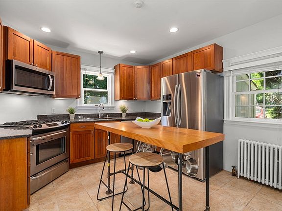 Welcome to this charming and affordable single family home located on a tree lined street in Newton! Enter this move in ready, 2 bedroom, 1 bath home through the adorable front porch, perfect for enjoying your morning coffee. The lovely kitchen has granite counters, cherry cabinets, stainless steel appliances and movable center island. Great light enters through abundant windows into the comfortable living room and spacious dining room with original wood floors. Ascend the stairs to the sunlit, well-proportioned bedrooms and tiled bath. Head outside to the serene, large private back yard with stone patio great for entertaining friends and family, just in time for Summer BBQs, or relaxing with a good book. One of the best features of this home is that it is located near the Auburndale Cove Recreation and Conservation area along the Charles River, schools, Auburndale Sq's shops, restaurants, Star Market, Starbucks, the commuter rail, Green Line T and express bus to Boston and highways.