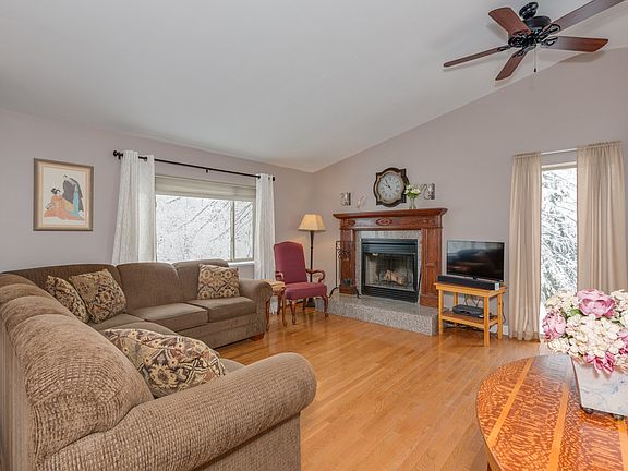A great opportunity to live in very desirable Colby Pond Neighborhood! There's walking/4 wheeling trails, two ponds to fish and ice skate. Set on 1 acre surrounded with nature. Open concept contemporary style, cathedral ceiling in living/dining/kitchen area. Master bedroom with bath, finished lower level has additional bedroom, office, family room & exercise room (can convert back to garage). Updated roof, paint, light fixtures, appliances & deck. Updated baths. Heated workshop, there's a pad ready with electric & gasline for heated above ground pool. All offers due on Monday, 9/7.