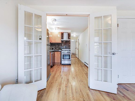 Beautiful, updated 1 bedroom, 1 bathroom condo with a private balcony, located 4 blocks from PATH. This unit has east and west exposures allowing for plenty of light, an in unit washer/dryer, hardwood floors, stainless steel appliances, granite counters, french doors and plenty of closet space. Located close to PATH, NJ transit trains, downtown ferry, shops, restaurants, parks and more. Must see!