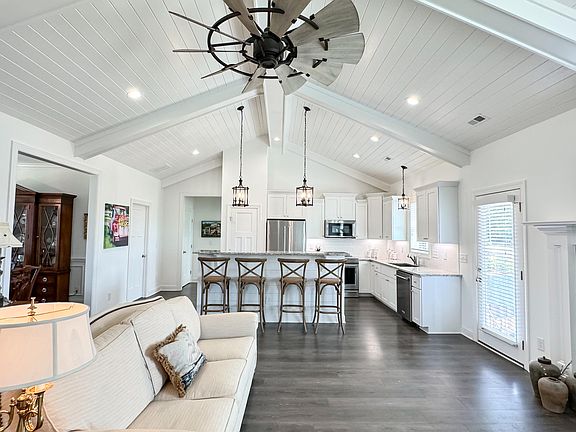 ABSOLUTELY STUNNING 1.5-Story Home with over 2,100 square feet of Open Floor Plan Living! The Home seamlessly connects the Family Room and Kitchen with High Vaulted and Beamed Farmhouse-Style Ceilings. The Kitchen is equipped a Large Barstool Island, SS Appliances including Beautiful Convection Oven, Microwave and Dishwasher, with Ample Counter and Cabinet Space to make cooking and entertaining a joy! There's also a Separate Formal Dining Room. Relax and unwind in the Master Suite featuring a Luxurious En-Suite Bathroom. Two additional Bedrooms share a Full Bathroom. Luxury Vinyl Plank Flooring ties together the entire main living area. Upstairs you'll find a Large Bonus Room and Private Office. Take in the Outdoor Pasture View from the Covered Deck or Stamped Concrete Patio or work in the Outbuilding, all enclosed by a Privacy Fenced Backyard. Hurry!!