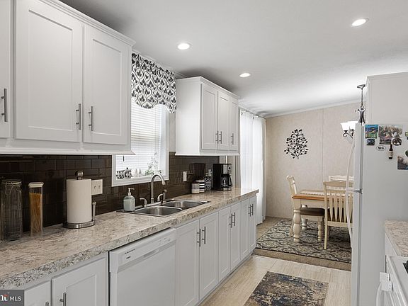 Five years young for this beauty.. Great curb appeal, super sweet inside and out. What a nice place to call home. Just bring your bags and get ready to start enjoying starting with the lovely front porch. Inside you will find a breakfast area looking out the front of the house. Galley kitchen, double sinks and separate dining room. Living room is spacious. Two good size bedroom, primary with full bath and an extra full bath. Laundry room with full size washer and dryer. Outside covered patio or carport and shed. Great spot to call home. Call for your private tour today. Current lot fee is $650, taxes are included in this. This will most likely go up to $820. Fee includes pool, overflow parking and clubhouse. Pet fee for cats and dogs 30 Lb max and approx $10 a month. This is a NON over 55 community. Park pays water and sewer. 2 cars will fit in the driveway. no cars on the street after 10 pm.