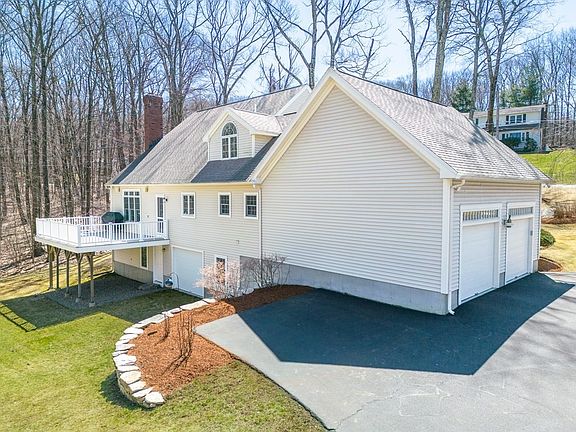 Welcome to this stunning Custom Colonial w/many great updates throughout. The main level features a well-designed open-floor-plan, with a large kitchen w/ granite countertop center island & SS appliances and access to huge 18x12 composite deck over looking 2+ acres. The sunken family room with vaulted ceiling & fieldstone fireplace creates a cozy ambiance for relaxing. The formal dining room & office/living room w/ French doors showcase beautiful oak flooring, adding an elegant touch to the space. Upstairs, the primary suite has a full bath w/ updated tile shower/glass. Two other large bedrooms finish off the second level. The finished basement provides an additional 420 sqft of living space & walks out to the private backyard, offering possibilities for a home gym, playroom, or media room. With its prime location providing easy access to Rt. 146 & the MA Pike (Rt. 90), this home offers both privacy & convenience. Don''t miss the opportunity to make this your forever home.