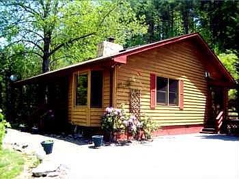 50' wide trout stream. 2BR/1BA, .88 ac. Large kitchen, woodurning FP, skylights & large bath. Firepit & sitting area right at water's edge. $139,900