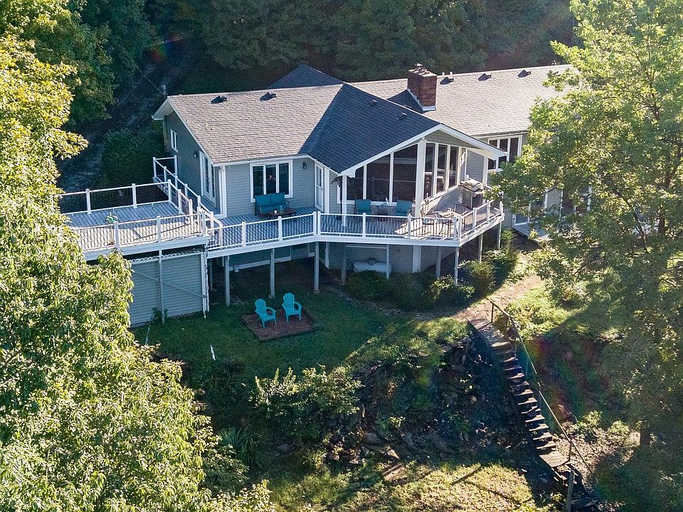 LAKEFRONT w/Dock on Doe Valley Lake. Amazing Lake Views. Almost every room has a stunning Lake Front View. This is truly a lake home with its Cathedral A-Frame Open Floor Plan Design and Glass Windows floor to ceiling. Oh, it doesn't stop there! How about a Huge Chef's Kitchen featuring very generous granite countertops, five-burner gas stove with telescoping downdraft vent, double oven, reverse osmosis kitchen water filtration, pantry, and mostly Bosch appliances. Did I mention the living room wood-burning Fireplace or the two Master Bedrooms, main floor and a private lower level Master Suite? All this with the Doe Valley lifestyle includes a 360 ac lake (great fishing and boating), two sand beaches, marina, clubhouse, tennis courts, golf course, and that's just the start. This one won't last long. Only a handful of lakefront properties become available each year. More Amazing photos coming soon! Call us Today!