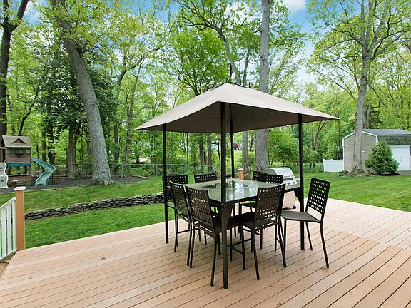 Center Hall Colonial that offers more than the average home. Custom touches & nicely updated. GREAT CURB APPEAL * Formal Dining Room with custom tile flooring, living room has 2 sets of french doors and defines this space beautifully. Granite countertops in the kitchen, center island & oversized granite topped breakfast bar. Family Room is right off the kitchen w/ gas fireplace & a wall of glass doors leading to the deck. This model has the largest bedrooms & optimal closet space. 2 zone heating & cooling, newer windows on 2nd level, Hunter lawn irrigation system & newer roof. Professionally landscaped, extended driveway & private yard. Swing Set with rubber mulch for a safe outdoor experience. Great location in Harmony Farms. Enjoy the Summer nights on your new deck surrounded by privacy